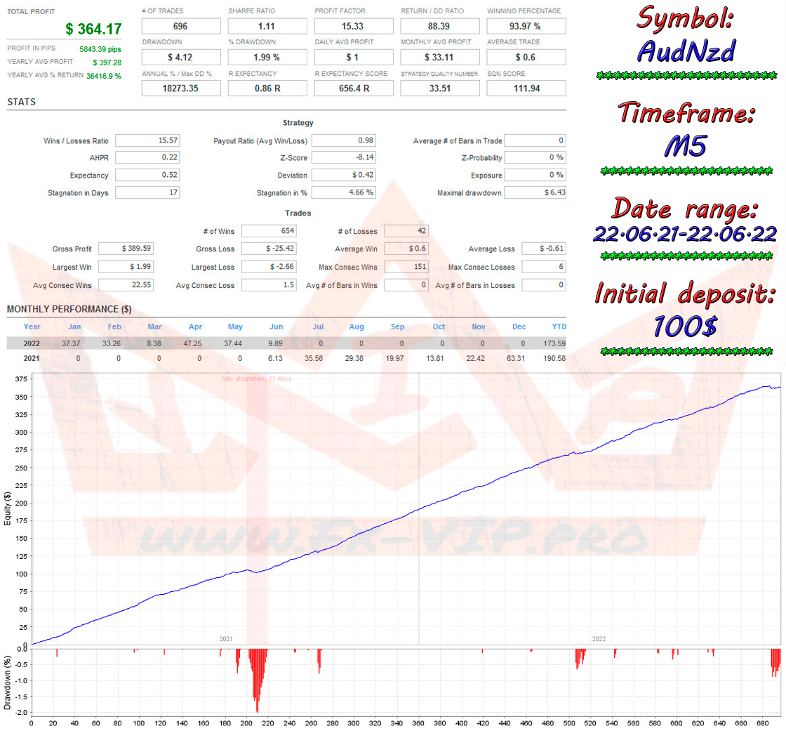 The AUDNZD Otaku EA uses logic specialized for the movement of the AUDNZD currency pair. Trades for the scalping strategy and trades for the intraday trading strategy are opened and closed independently. Thus, there can be two trades in the market in the same direction, but no more. The targets are small, the stops are far (but all trades have) – I would assume that it is sensitive to the spread and not every broker will be profitable, but this is just an opinion.