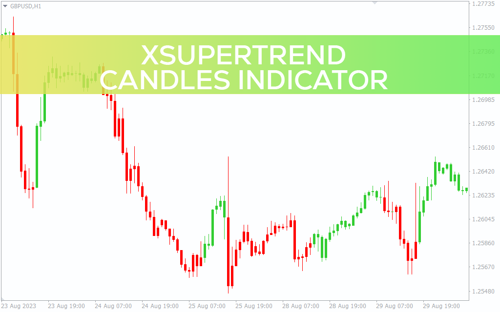 xSuperTrend Candles Indicator For MT4 is an effective trend-following tool that provides bullish and bearish forex trading signals by candlestick color