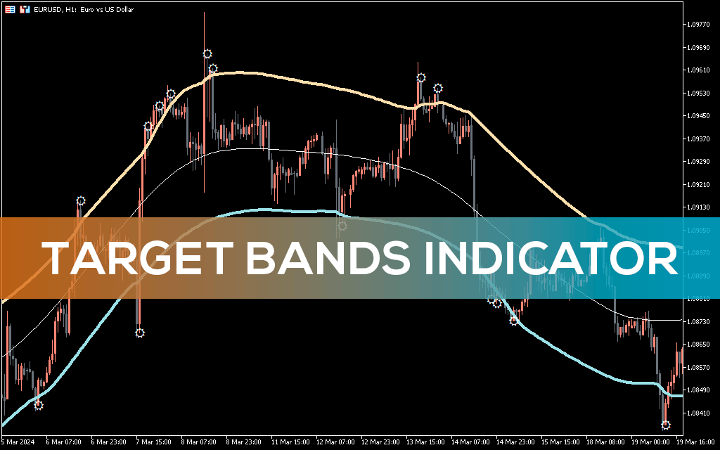 The Target Bands indicator for MT5 is a channel-type technical trading tool that determines the optimal zone for a trend reversal.