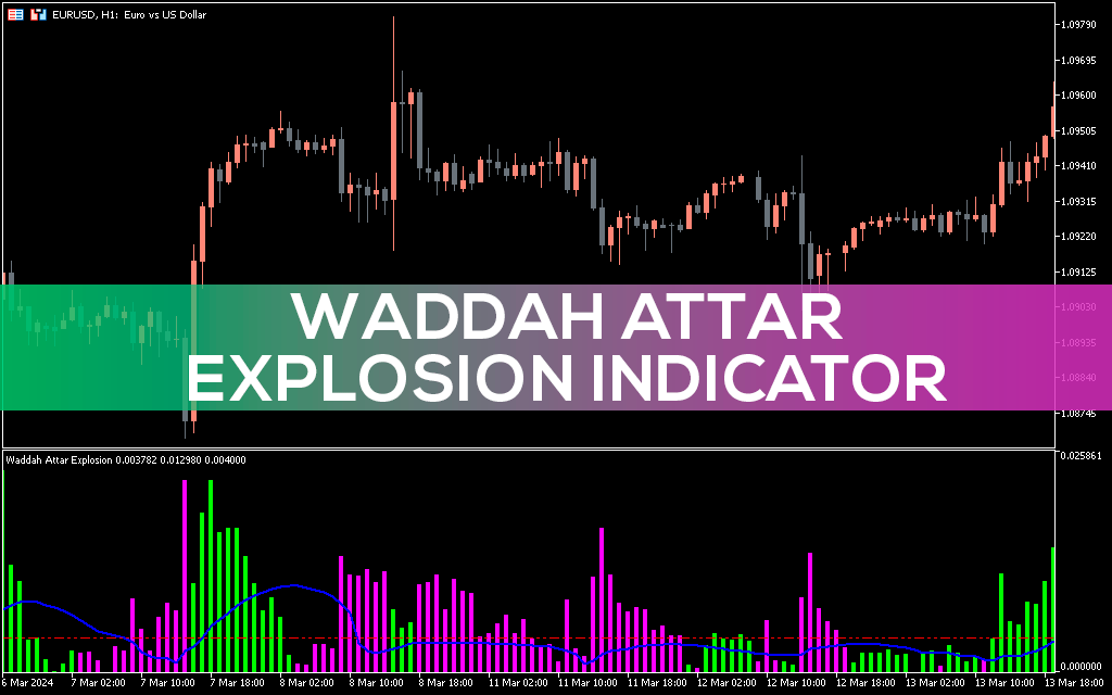 The Waddah Attar Explosion Indicator for MT5 provides forex trading signals using the high, low and reversals of two charts. Best suited for day trading and scalpers.