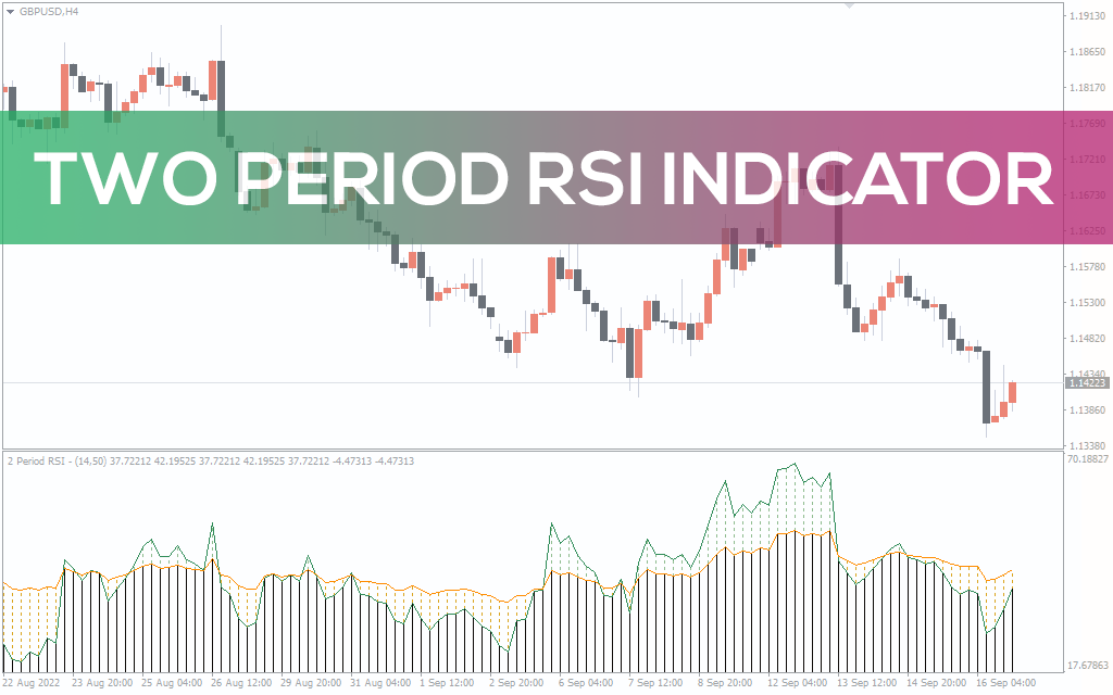 A Two Period RSI indicator that uses short and long periods. It is an excellent tool for trend confirmation and a great trend reversal detector.