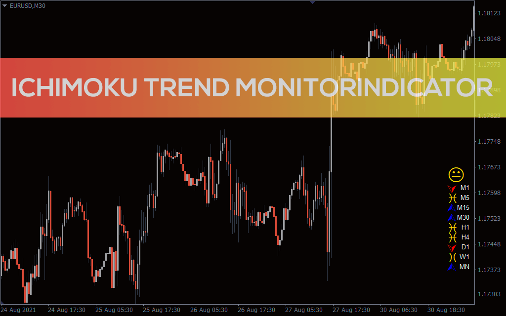 The Ichimoku Trend Monitor Indicator for MT4 is a trading tool that helps you to see trends in multiple time frames at a glance.