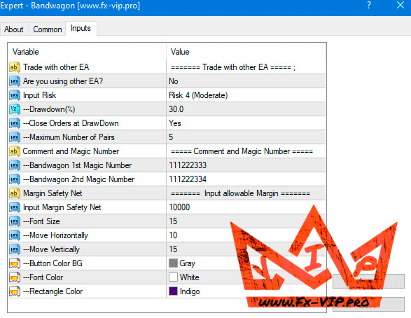 BandwagonEA The advisor is installed on one chart and trades various currency pairs from it, in the settings you can choose how many pairs will work, bot also has good capital management, you can choose your risk appetite in the EA settings and the maximum preferred DD, advisor will calculate the lot size and will automatically manage your account.