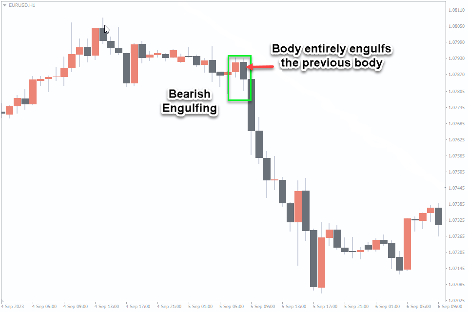Bearish Engulfing: Wait for an established uptrend, then enter a short (sell) position when the bearish candle closes. Set a stop-loss above the bullish candle’s high.