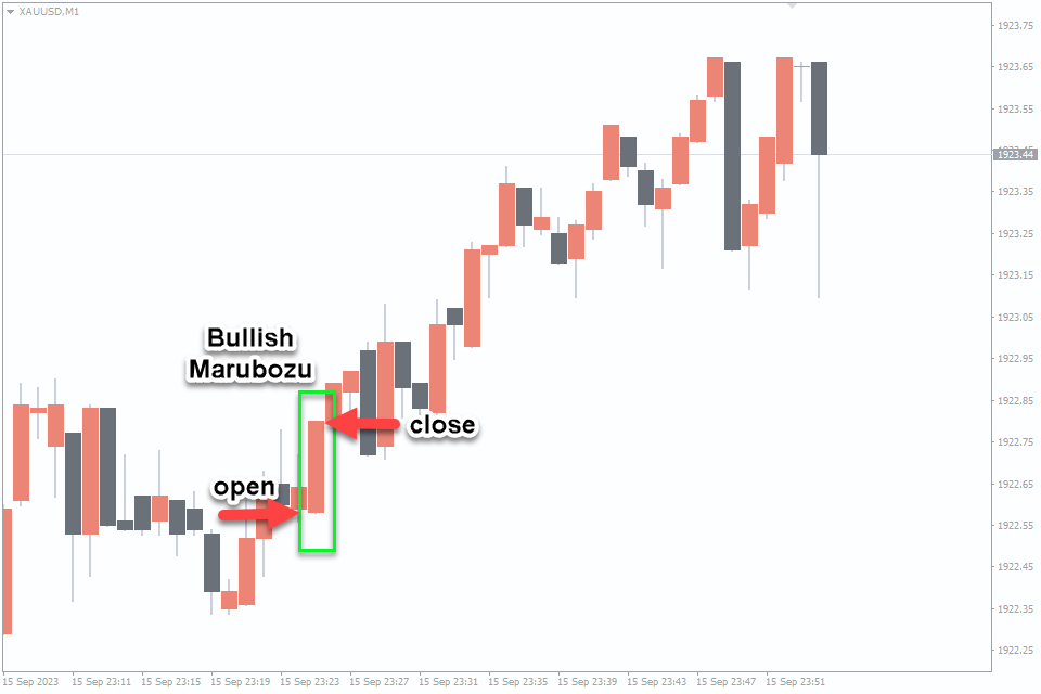 Bullish Marubozu: A full candle body with no shadows at the top or bottom signifies strong bullish sentiment. It suggests buyers dominated the entire session.