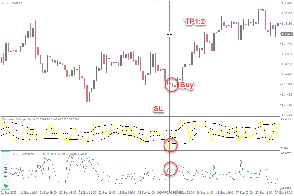 Indicators: Stochastic Bollinger Bands Indicator, FXXSI. ProfitRatio (optional)