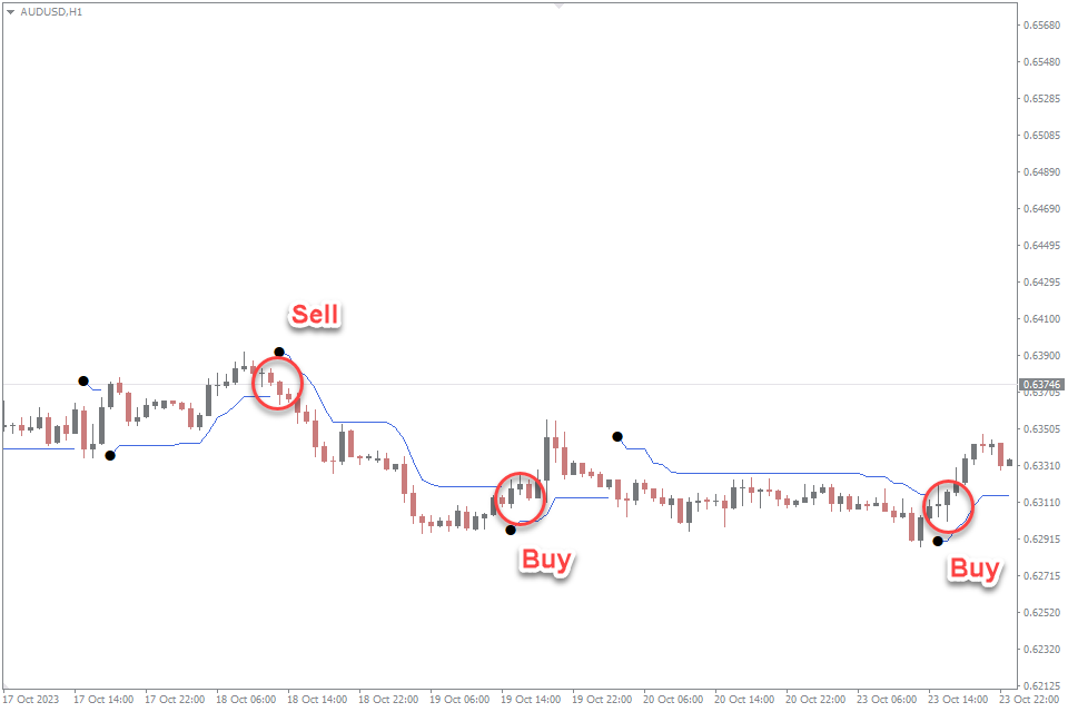 Entry Point for Buy: When the ATR Stop Indicator shows the signal that price is near the lower ATR band, consider it a potential buy signal. This suggests that price may have reached a support level within the sideways range. For added confirmation, watch for bullish candlestick patterns or complementing indicators.