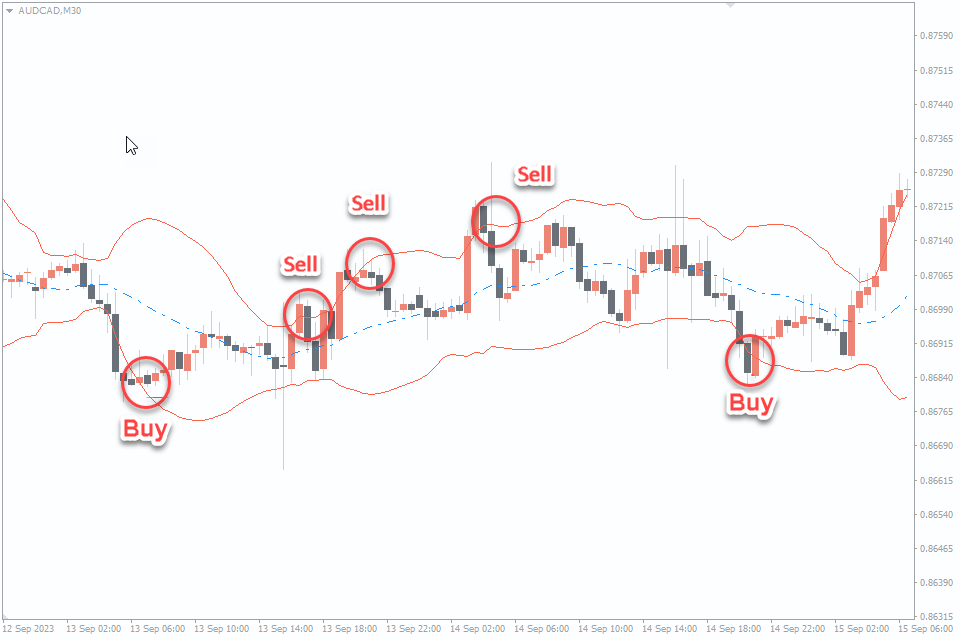 Stop-Loss: Place your stop-loss just above (for sell) or below (for buy) the entry candlestick pattern or the opposite Bollinger Band.