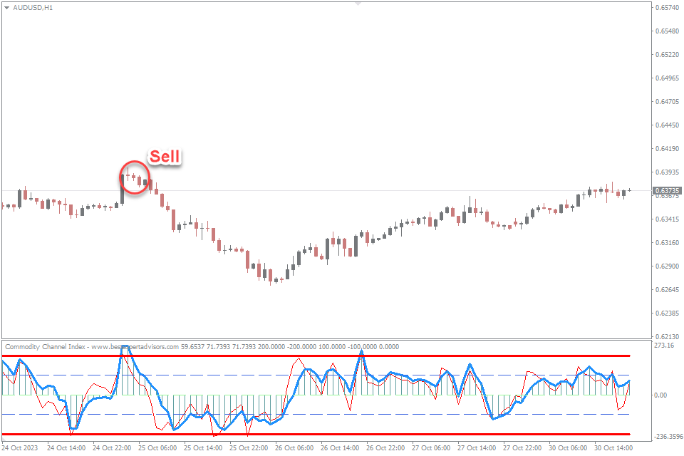 Entry Point for Sell: When the RSI crosses below the overbought level (70), it suggests a potential downward reversal. Confirm the signal with a bearish candlestick pattern or other supporting indicators.