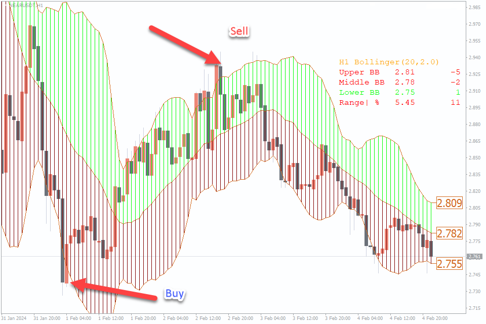 Mean Reversion Trading: Another popular strategy involves mean reversion trading, where traders anticipate the price to revert back to the mean (middle band) after reaching the outer bands. In this strategy, traders buy when the price touches or falls below the lower band and sell when it touches or rises above the upper band. However, it’s important to use additional confirmation signals to filter out false signals and avoid getting caught in a prolonged trend.