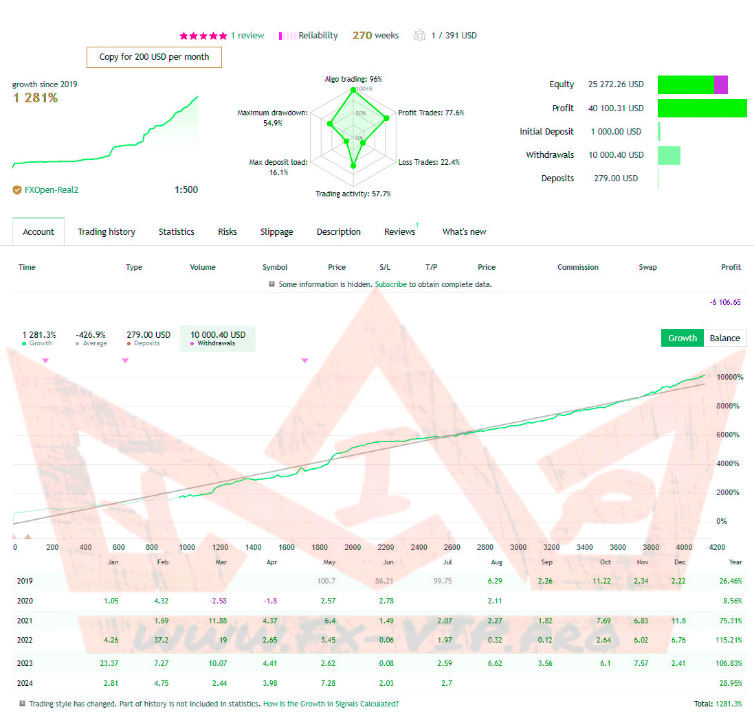 Backtesting was not carried out as there are account signal from the author, detailed statistics of trade can be found below