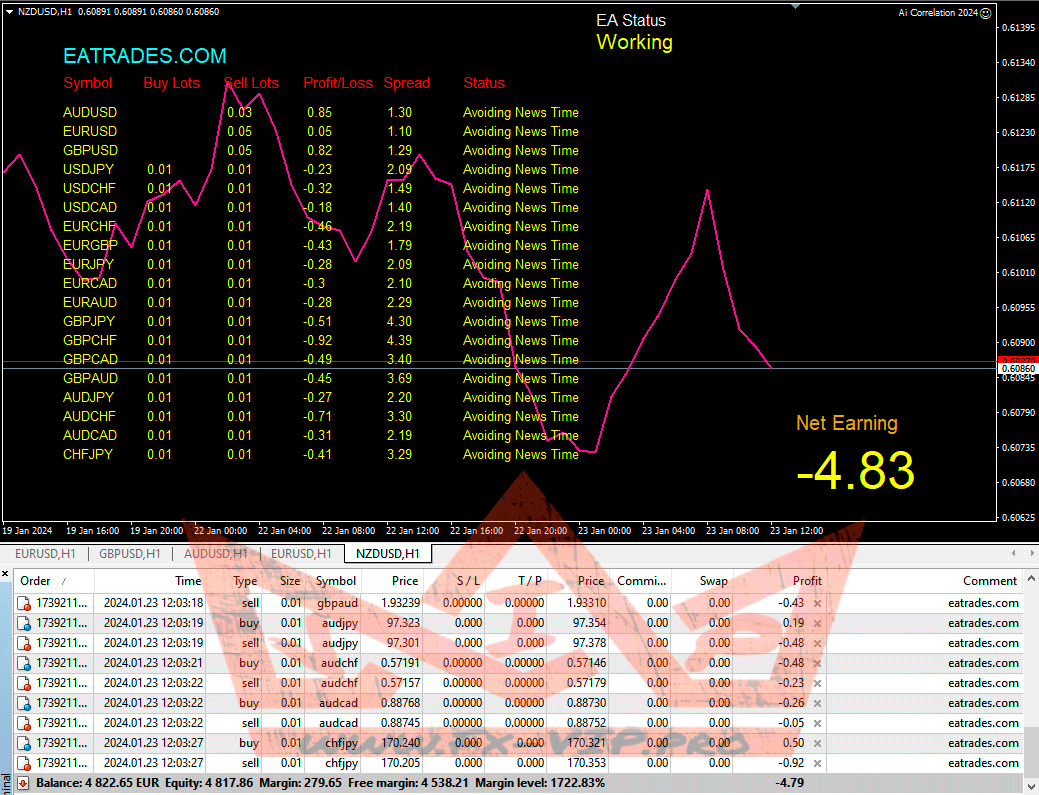Correlation EA that makes a correlation between multiple pairs in the market, and then hedge them together to go safe in forex market. This EA works on about 20 pairs in the same time and all the pairs managed by only one chart.