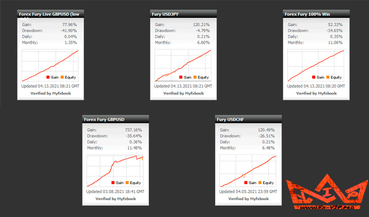 Forex Fury uses a range based trading method that works best in low volatility.There are also filters to ensure that the robot trades in the right conditions.Trades 1 hour a day, 1 pair per account is recommended.