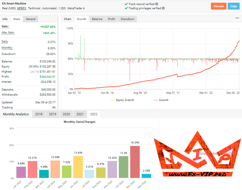 Backtesting was not carried out because there are many monitorings on a real account from the developer, you can find more details below.