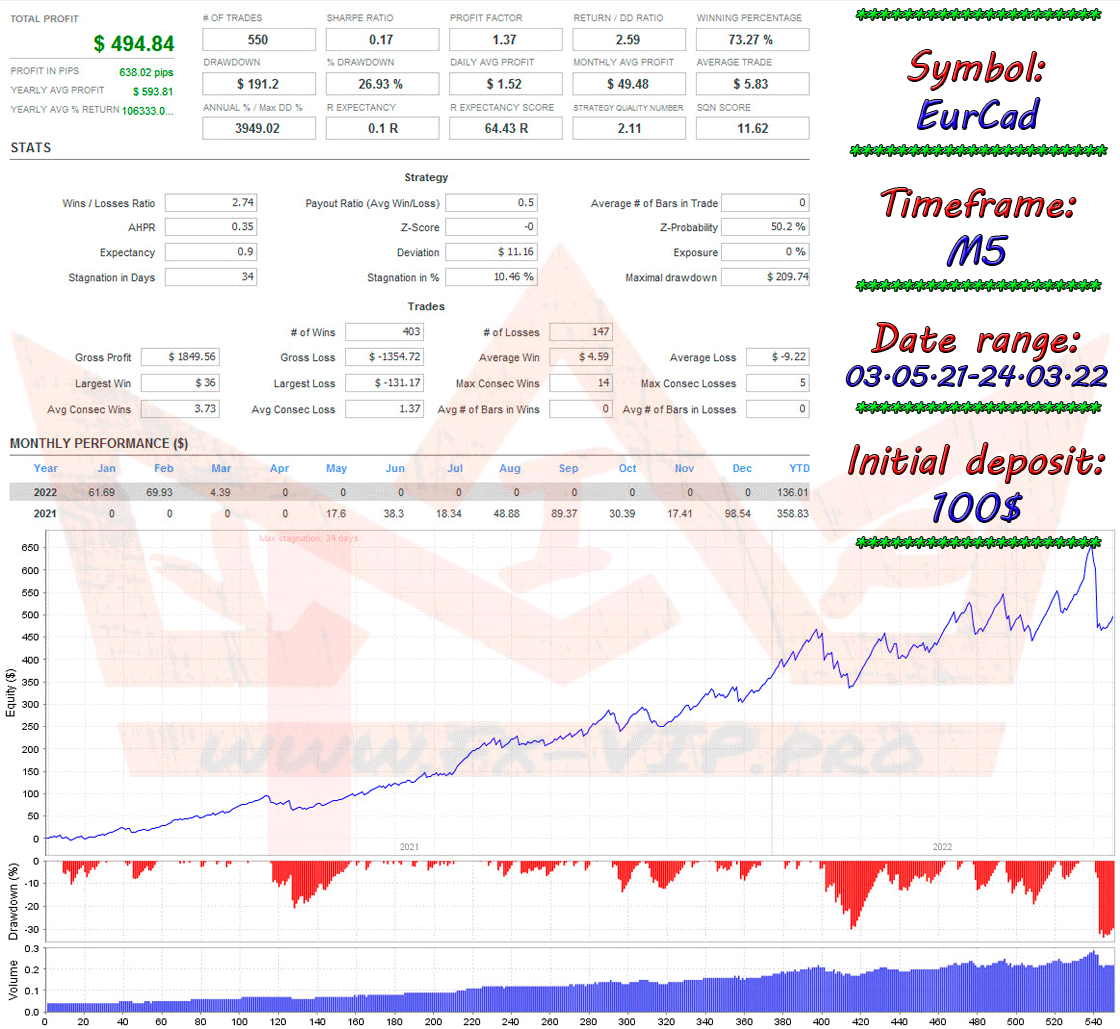 This expert advisor definitely deserves attention, a good approach to entry points provides profit, but as you can see from the backtest, not for all recommended currency pairs, for some it shows an impressive result, but for others, not very big profits or even marking time in one place , but at the same it does not drain the deposit – and this is the main thing.