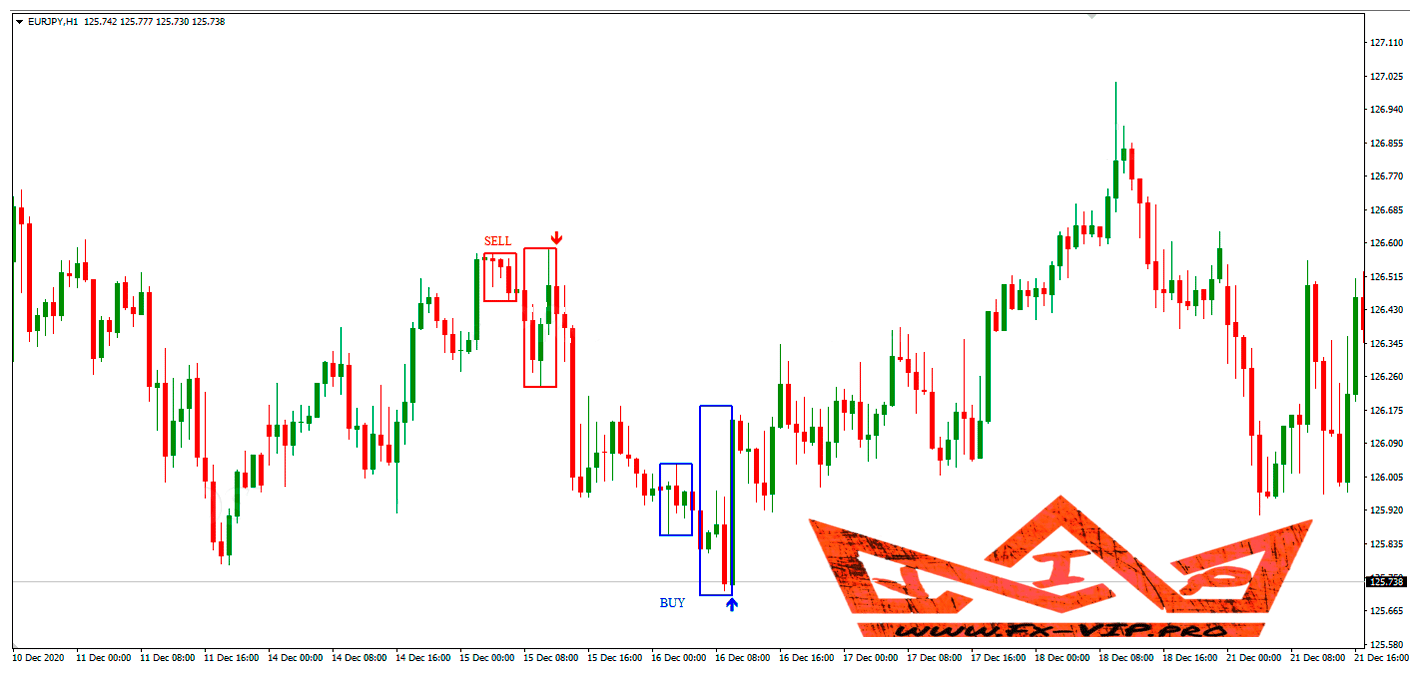 When trading with boxed signals, it often happens that the price hits the Stop Loss, and then reverses and continues to move in the direction of the trade. It is very simple to protect yourself from such an unpleasant incident – make a deal only at the moment of breaking through the extreme point of the second signal box on the price rollback. At the same time, a protective Stop Loss can be set a little further, setting it 3-5 points below/above the High or Low values, depending on the type of transaction.