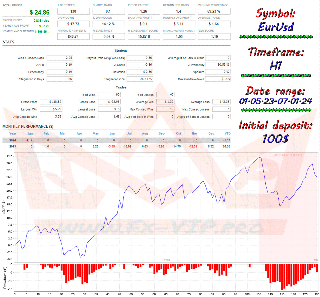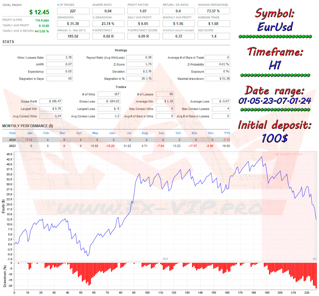 I think this advisor is worth testing and understanding how it works; in my opinion, it trades relatively safely, and has a simple set of settings that even a novice trader can understand. The advisor is designed for the EURUSD currency pair, but I think you can try to use it with other currency pairs, I also recommend experimenting with the settings, you may get better results than, for example, with the default settings, besides, you don’t need any special knowledge here, you only need to change setting stop loss by increasing or decreasing the value in pips, and you can also experiment with setting the time in which the advisor works, for example, after taking a quick look at backtesting, we noticed that the advisor receives a lot of losses at night, so we limited the trading time in the settings and got the result is better than the default; if you analyze the work of the advisor more accurately, you can choose an even better time for trading. Therefore, experiment, develop, work on your mistakes and at some point you will come to success and stable profit!!!