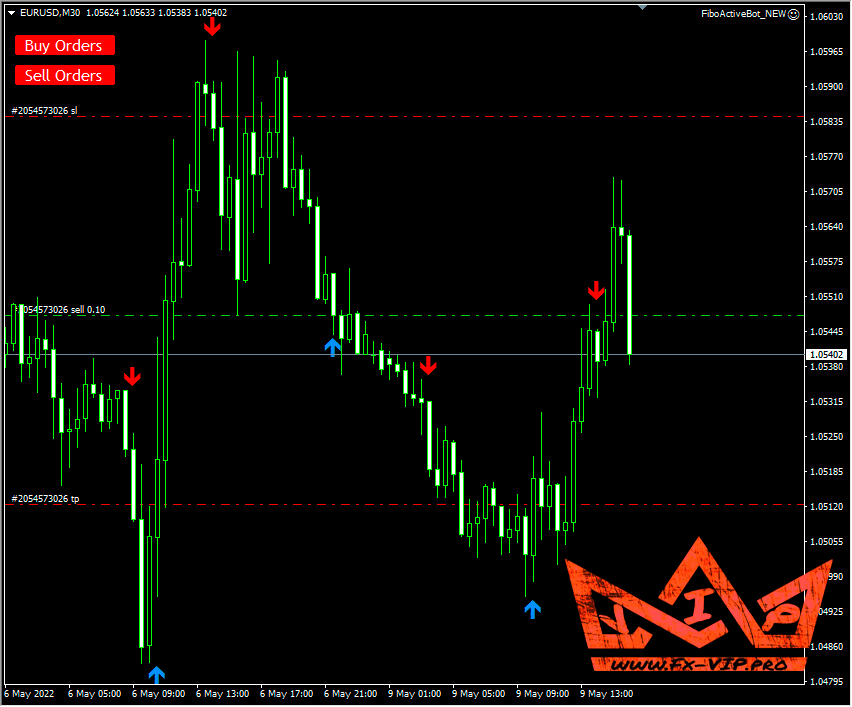 FiboActiveBot it offers buy or sell signals in the form of up or down arrows respectively and you can see how good they are visually. Also, it has a pattern filter – just if you want – you can add it and cut risky trades. It works as an adviser, opening all trades automatically on signals or you can simply use it as an indicator in addition to your manual trading strategy – it’s up to you
