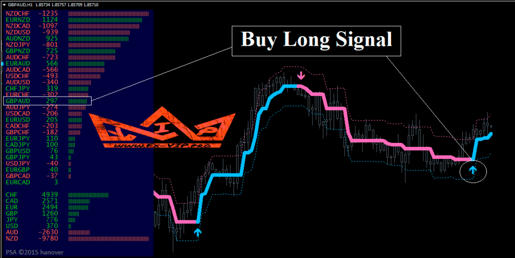 The Firebrand system analyzes the market behind the scenes using a built-in algorithm to try to find buy and sell entry signals in trends.