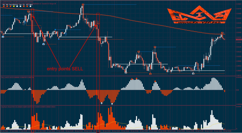 - If the price is below the daily ultra Day look signal and the Day Exp indicators form a white histogram, this means that prices are in the retracement zone after the downtrend.