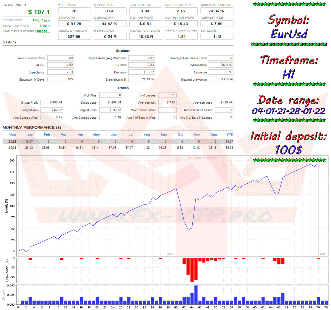 The developer practically does not tell anything about the adviser and its trading method, it became clear to me that the adviser does not trade often when trading one currency pair, the adviser makes 5-10 transactions per month, of course, all this is compensated by trading on many pairs, trades without protective stops and without TP , puts averaging positions using martingale, but since it does not trade often, it rarely comes to martingale, as some positions go in the right direction.