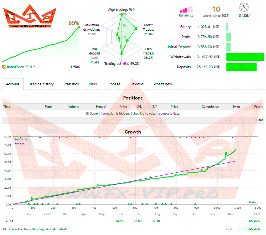Backtesting was not carried out as there are several real account signals from the author, detailed statistics of transactions can be found below