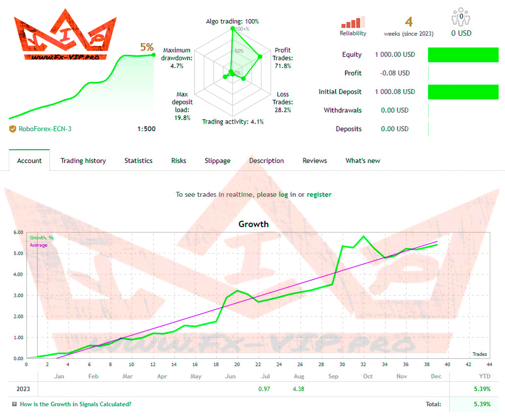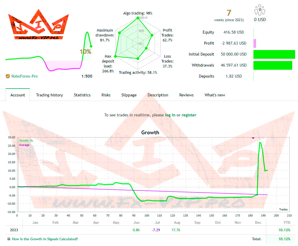Backtesting was not carried out as there are several real account signals from the author, detailed statistics of transactions can be found below