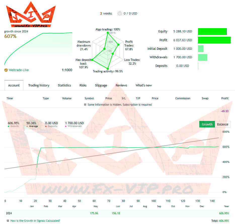 Backtesting was not carried out as there are account signal from the author, detailed statistics of trade can be found below