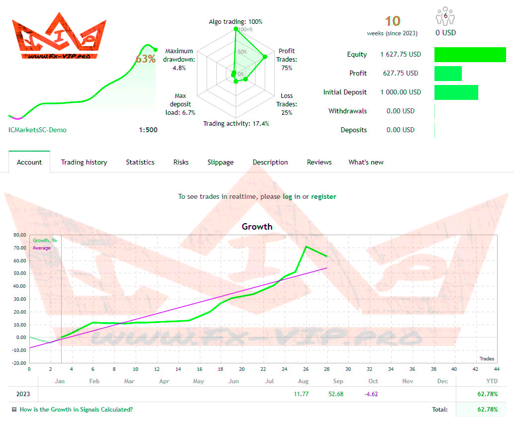 Judging by the monitoring of the developer, the advisor works quite effectively, the maximum drawdown is very small and the profit brings in impressive, it does not trade often since it works on the daily timeframe, it enters into transactions approximately 2-3 times a month, but the number of orders is approximately 10-15 per month, this is due to the fact that the advisor works on seven strategies and places one order for each.