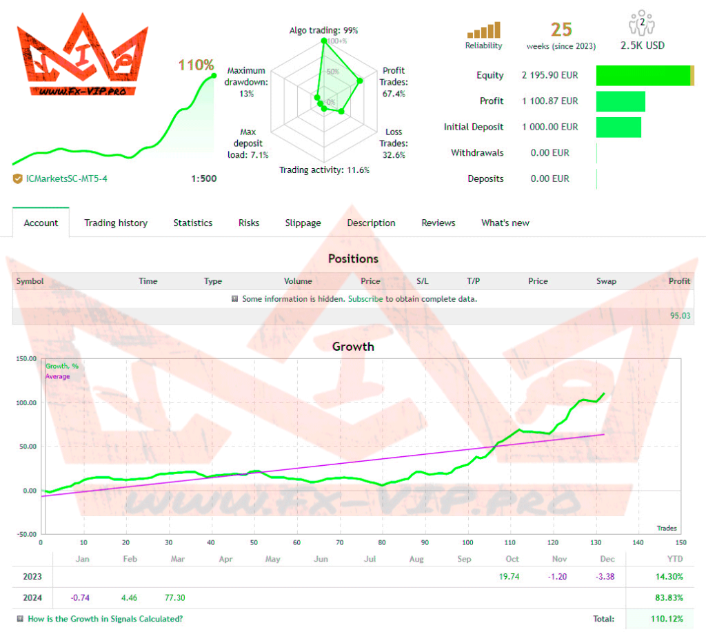 For this advisor, I recommend using accounts with a minimum spread, it is better to use the RAW account of this broker IC Markets , it is also recommended to use a fast VPS server for smooth operation, I highly recommend opening an account here Zomro and select “Server for Forex”, it costs about $3 per month.