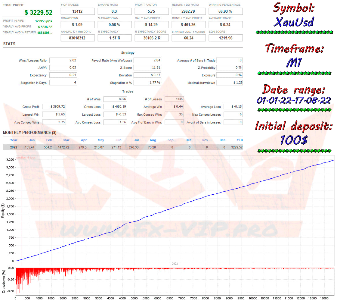 IS Red EA is designed to work with XAUUSD (Gold). The EA does not use martingale and other dangerous profit methods. It scalps a small number of pips, while each trade is protected by a small stop, which does not allow the adviser to go into large drawdowns.