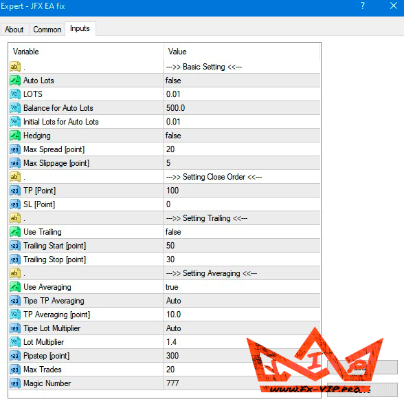 JFX EA The EA trades on major currency pairs, with default settings it trades with position averaging and martingale, but this can be disabled in the settings and the EA will trade only one order, you can also set TP, SL and trailing stop for each position.