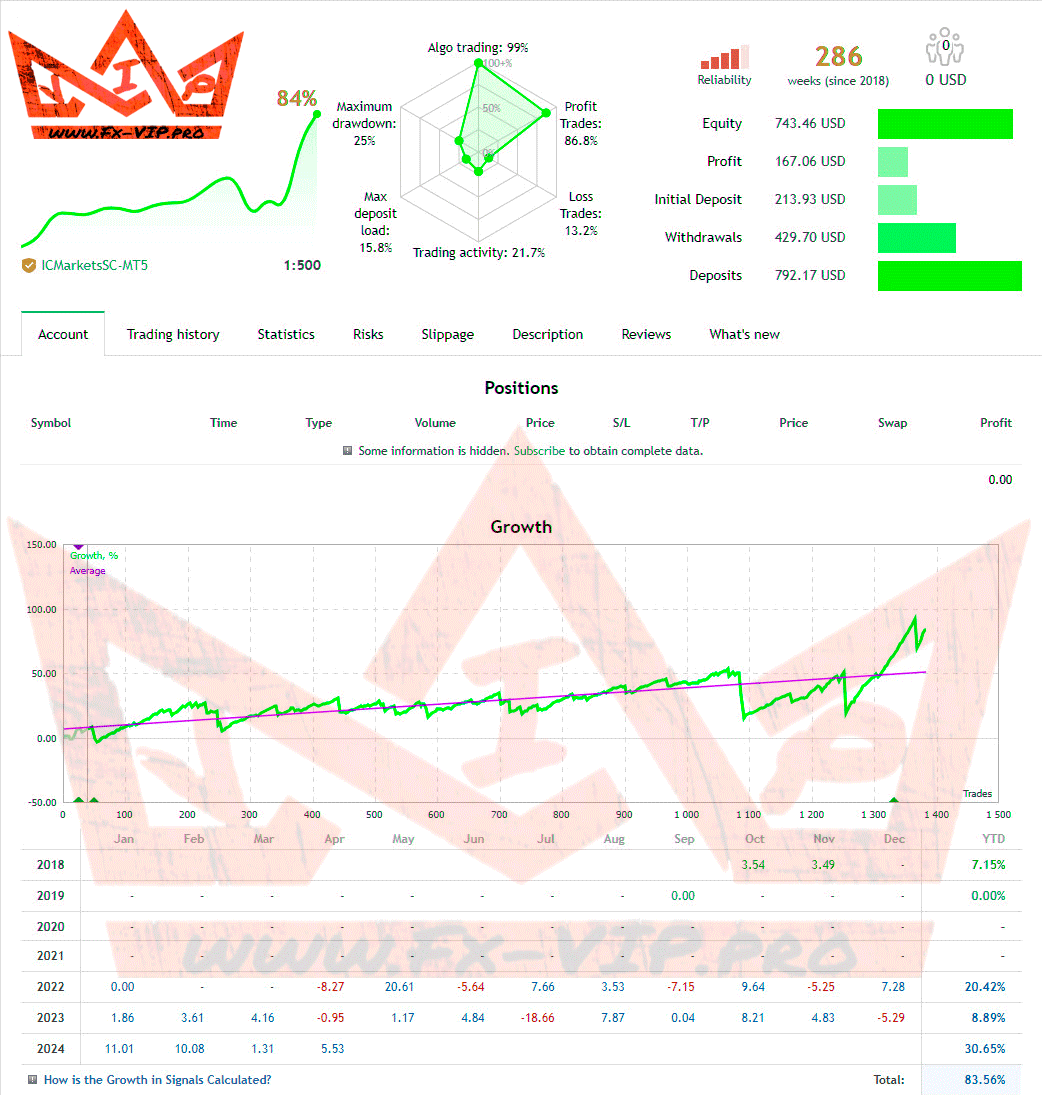 Backtesting was not carried out as there are account signal from the author, detailed statistics of trade can be found below