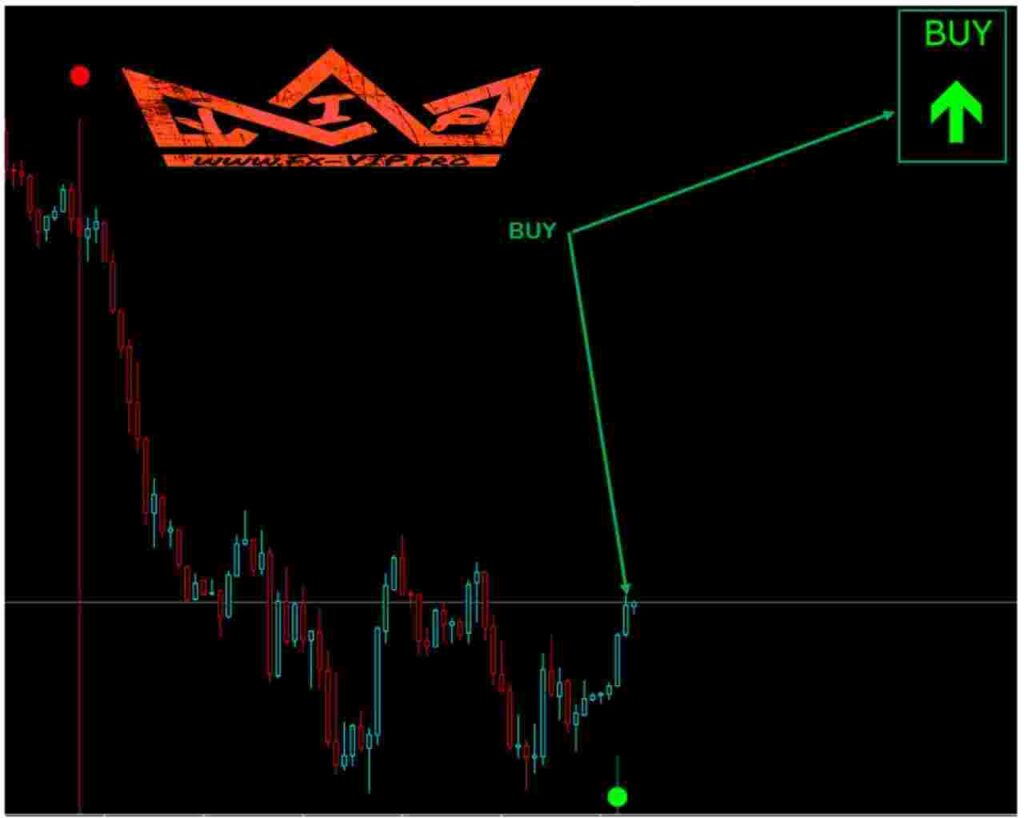 Open a long position when the word “BUY” appears on the chart and at the same time a green circle appears: This is shown below.