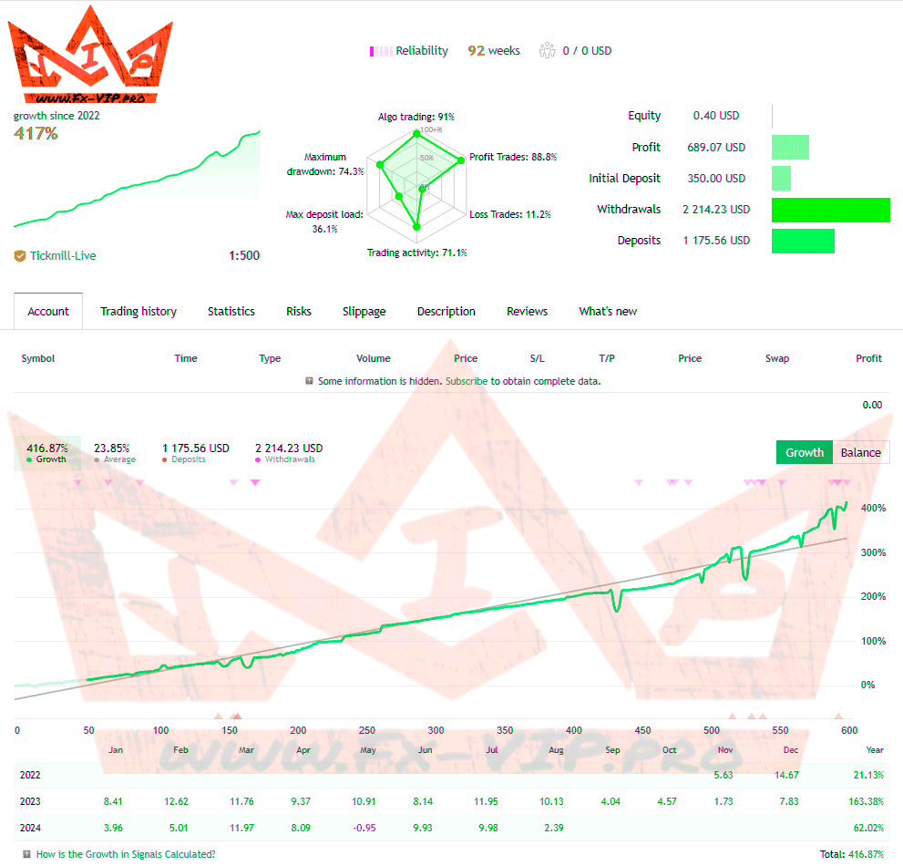 Backtesting was not carried out as there are account signal from the author, detailed statistics