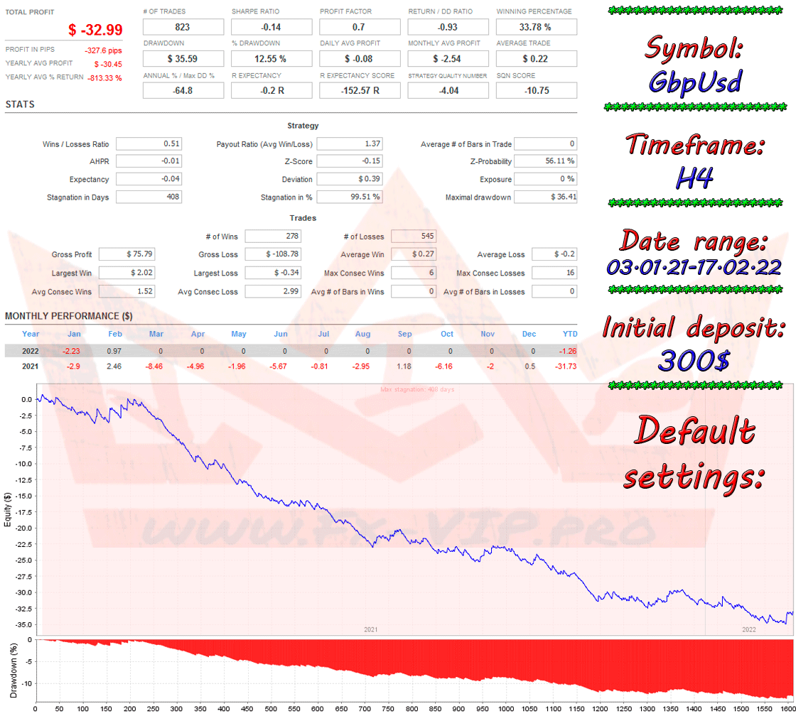 So, as mentioned above, the adviser trades according to the breakdown strategy, which is not very appropriate at the moment, breakout strategies of such a plan as used in the adviser no longer work, although it is possible at some point it will start to make a profit, the fact is that the forex market is cyclical and sometimes one strategy makes a profit for years, but then at some point it stops working and brings continuous losses, after some time passes it’s not accurate, but let it be two or three years, and the strategy starts to make a profit again, believe it, and it’s not randomness, there are a number of factors and explanations why this happens, but we can talk about this for a long time, so we will not delve into in this.