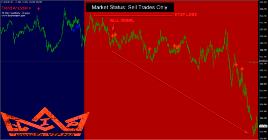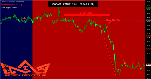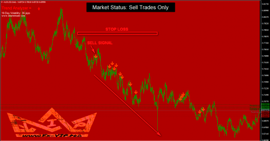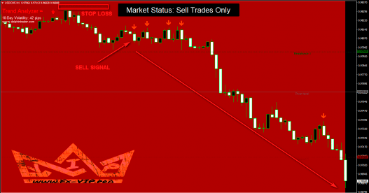 Red background – trade only red sell signals. Ignore any buy signal.