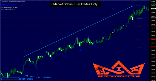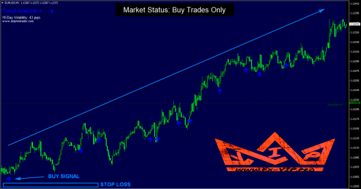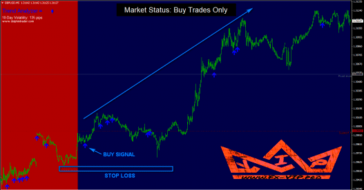 Blue background – trade only blue buy signals. Ignore any sell signal.