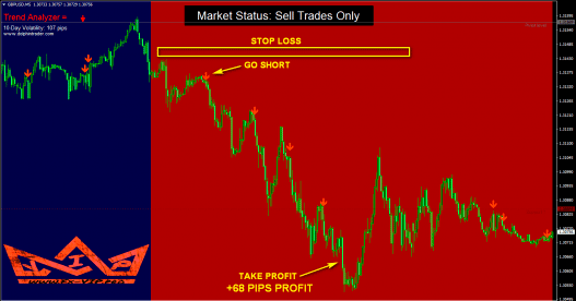 Therefore, if you were to enter a sell trade when it hit, you would close it with a 68 pip profit.