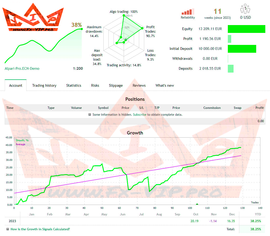 Backtesting was not carried out as there are account signal from the author, detailed statistics of trade can be found below