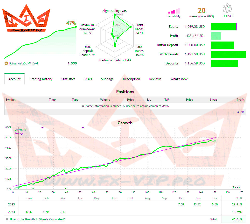 Backtesting was not carried out as there are account signal from the author, detailed statistics of trade can be found below
