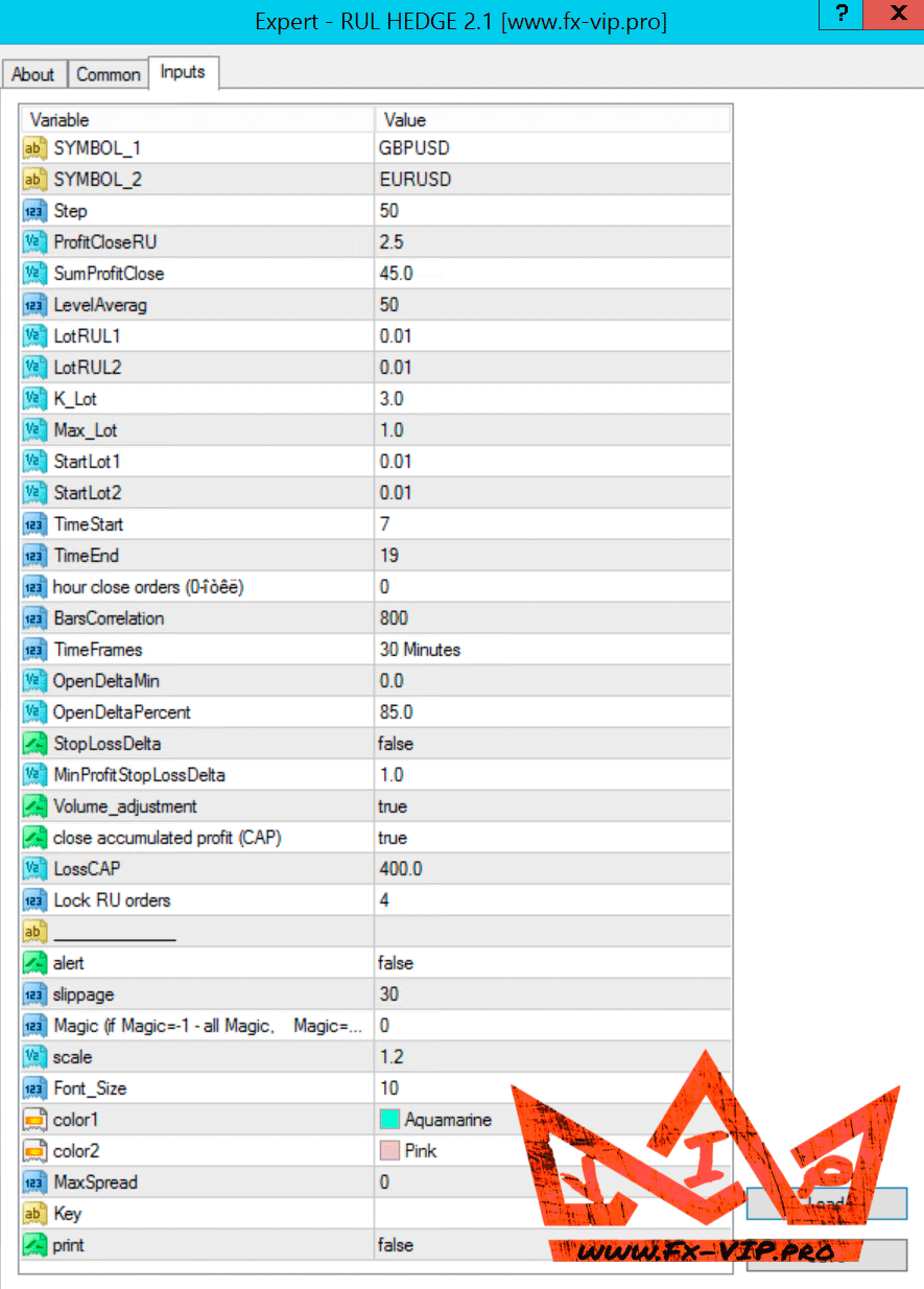 | Currency pair | GBPUSD-EURUSD, Any, but definitely! all instruments in the basket must have a positive correlation! |