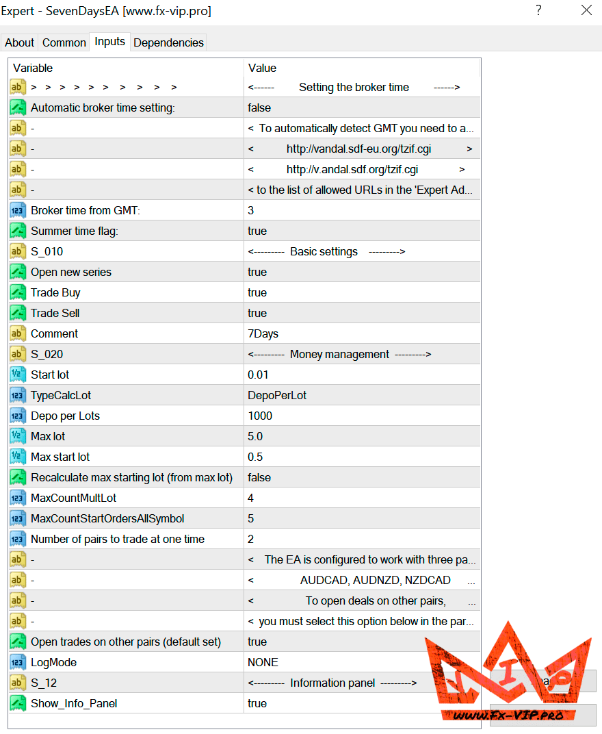 Seven Days EA is a fully automated grid system, scalps profits mainly from 5 to 30 pips and controls losses, on average opens about 20 orders per month for three currency pairs, the advisor consistently brings profit every month for two years!!!