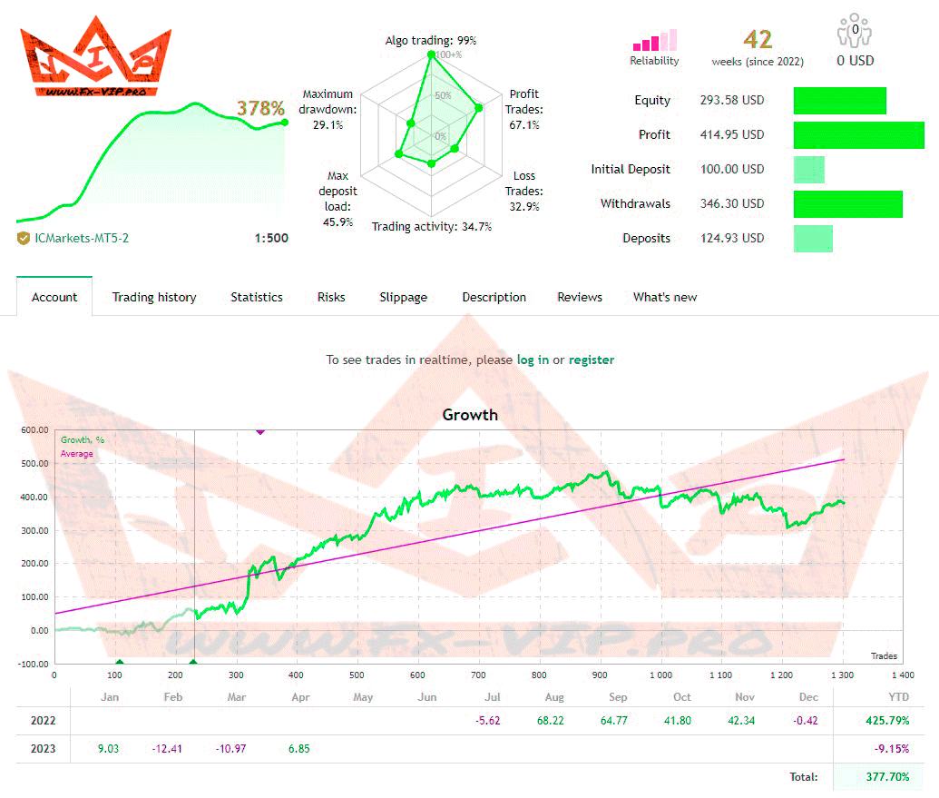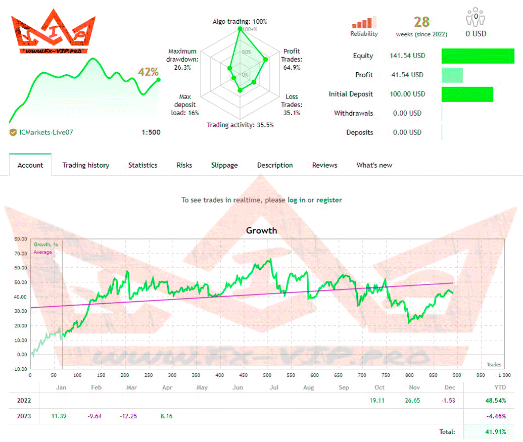 Backtesting was not carried out as there are monitoring of real accounts from the developer, you can find more details below
