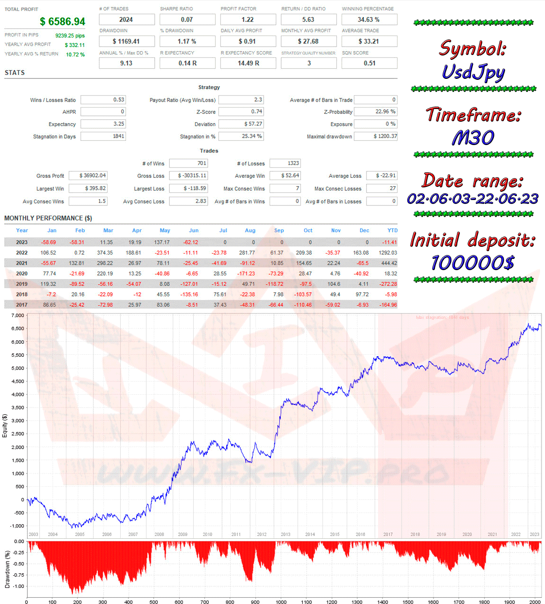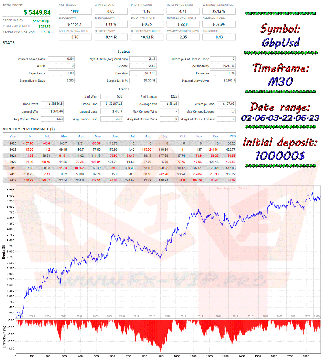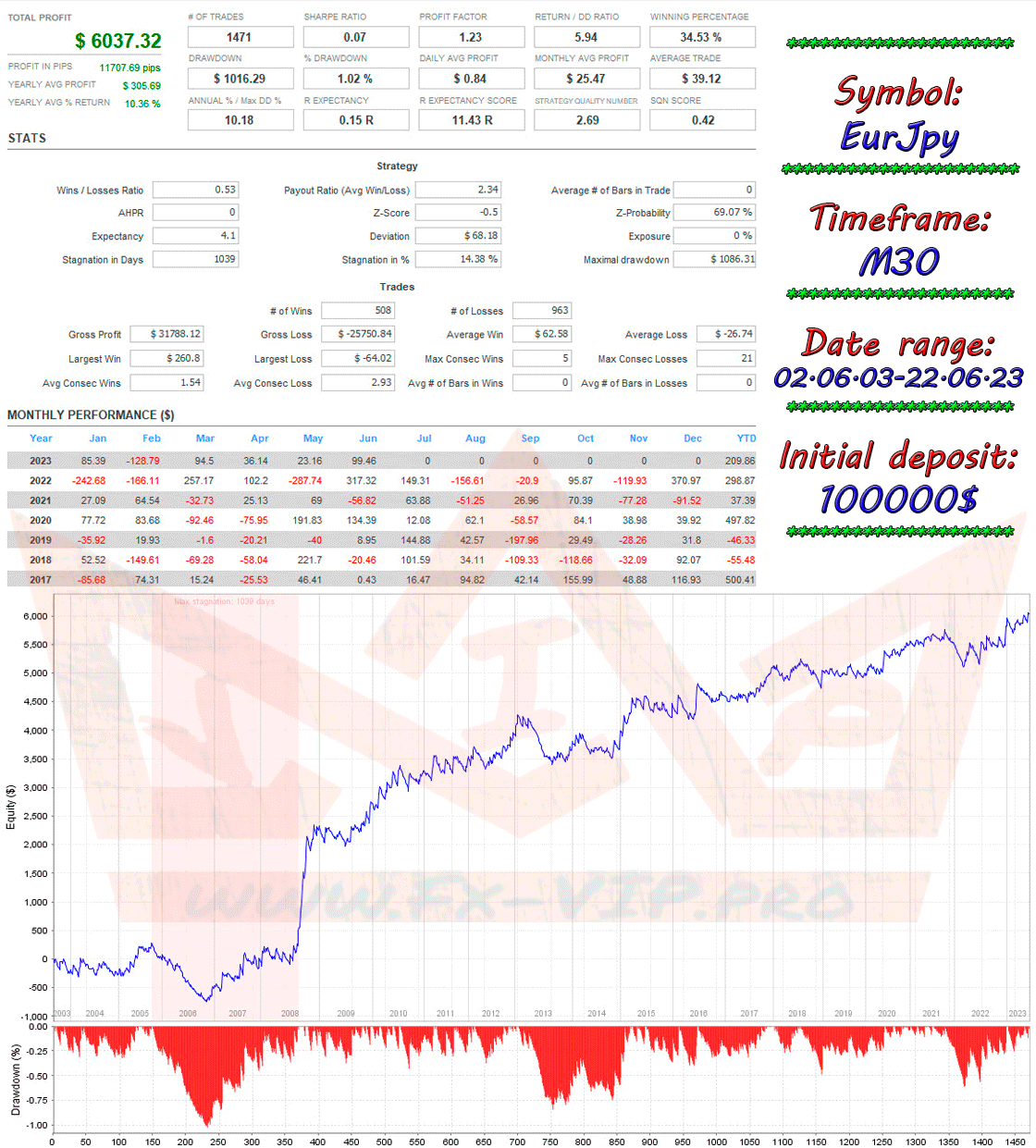 Backtesting has been carried out for all available traded currency pairs over the past 20 years, and shows excellent results, below you can find out more about the test results