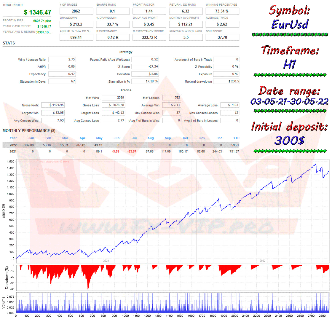 The developer of this EA writes that it is a very safe robot with a $500 deposit, it brings about 35% of profit per month, while the maximum drawdown does not exceed 30%, the robot works best on the EURGBP currency pair.