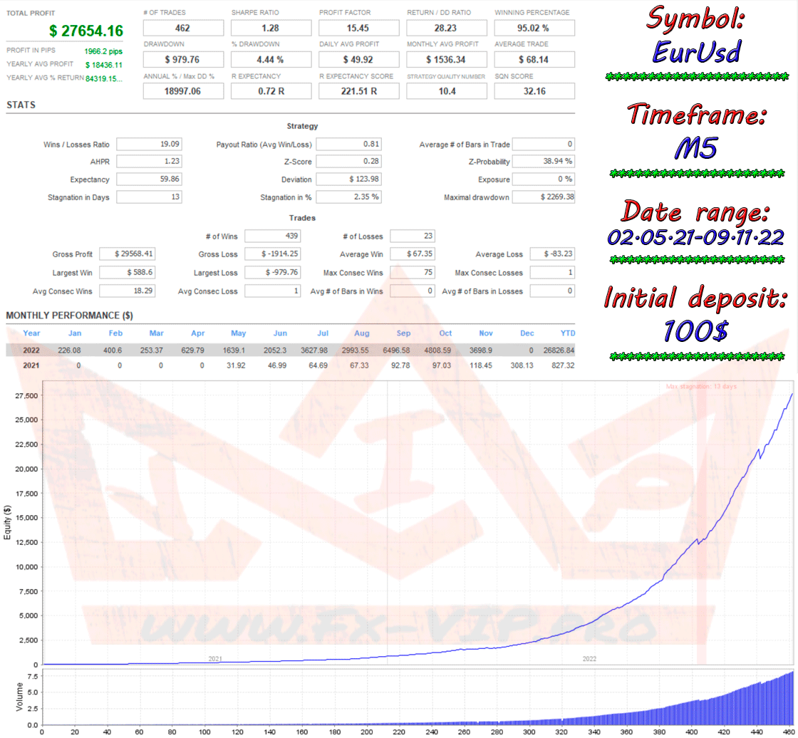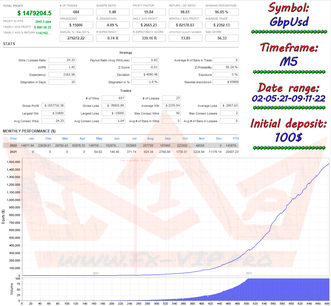 We did a backtesting on the two major currency pairs EURUSD and GBPUSD default settings, deposit 100$ , the EA shows incredible results in the strategy tester, more below