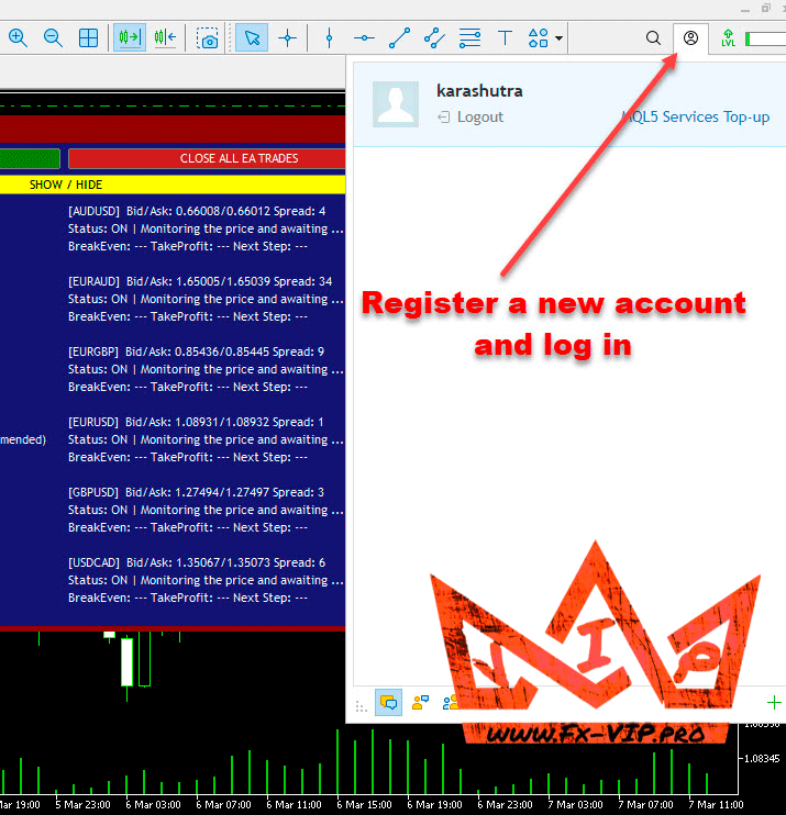Register a new MQL5 account and log in to it
